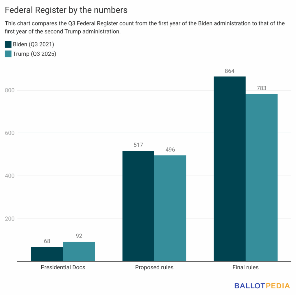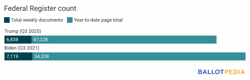 Here’s a look at changes to the federal register from the last quarter, spanning from July 1 to Sept. 20, and how that compares to the third quarter of 2021, the first year of the Biden Administration.