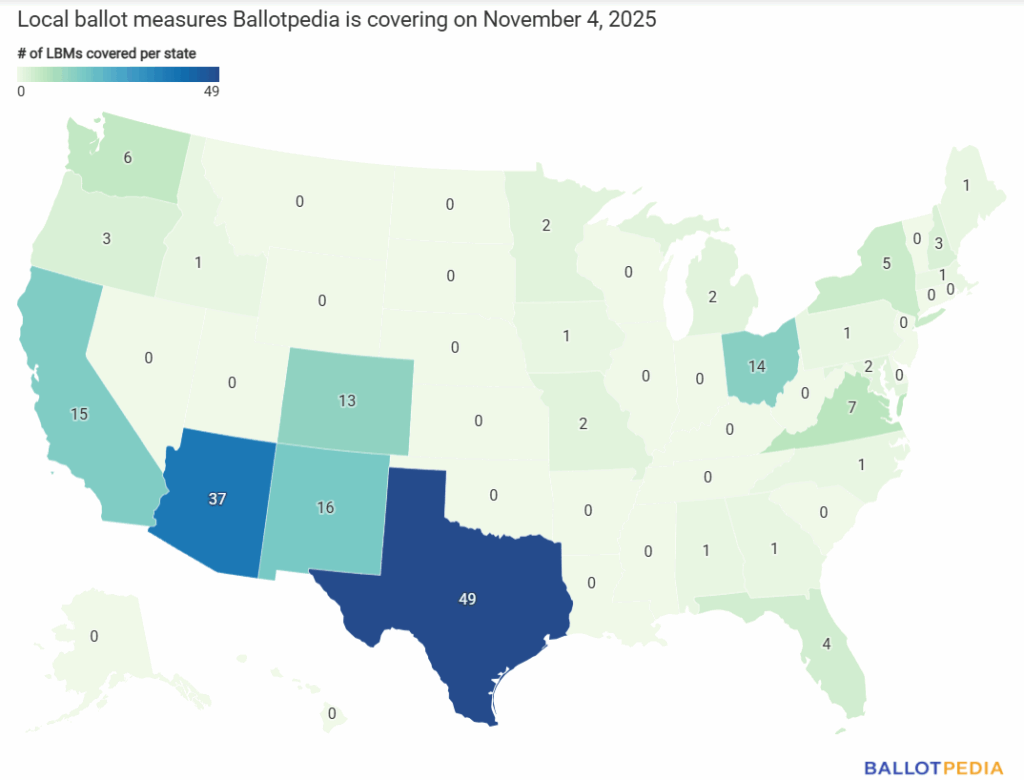 Ballotpedia is covering the most local ballot measures in Texas on Nov. 4, with 49.