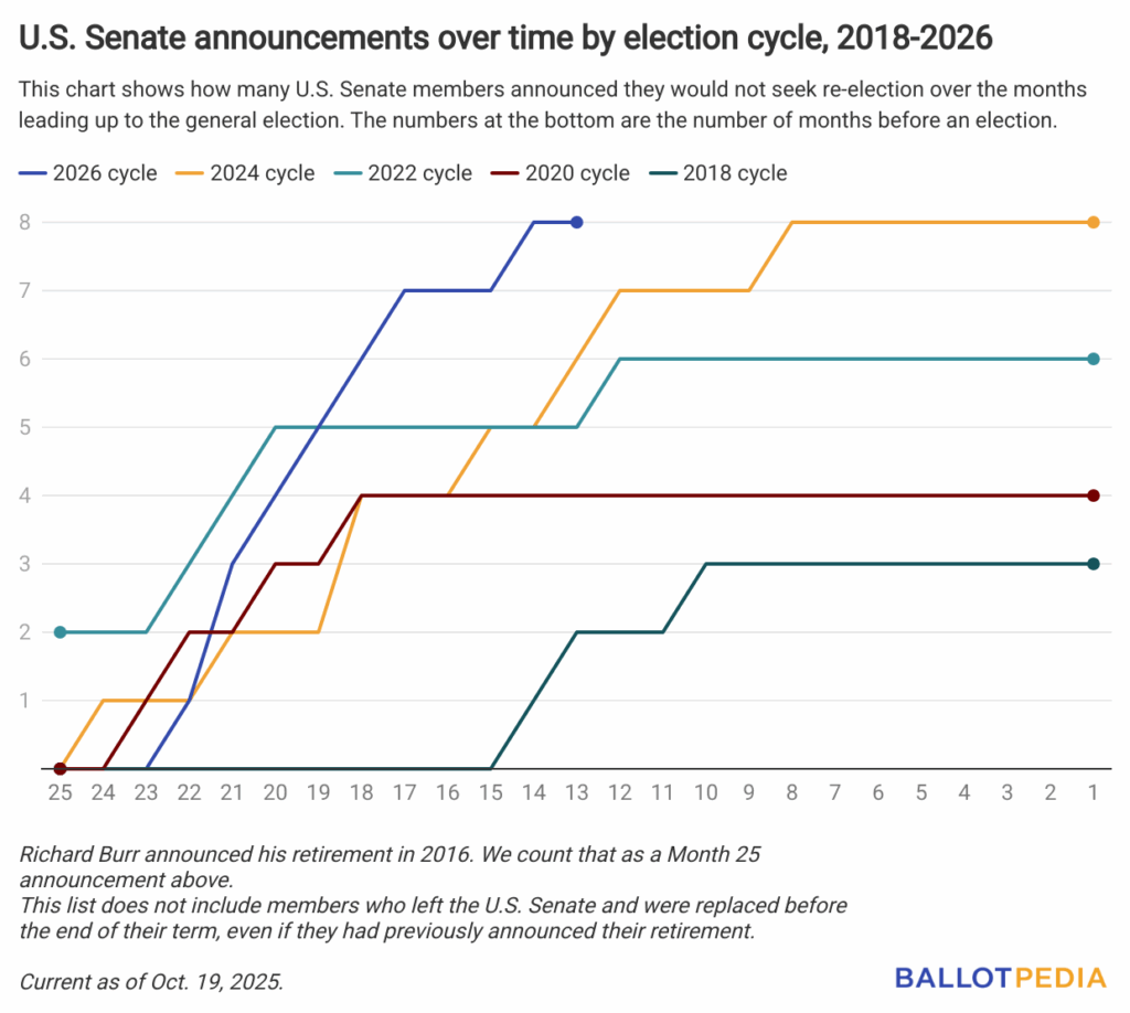 Click here to read more about senators who are not seeking re-election in 2026, and here for more about U.S. representatives who are not seeking re-election in 2026.