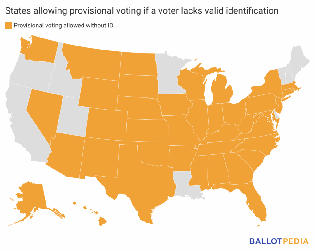 Across the country, 40 states allow voters to cast a provisional ballot if they do not have the required identification, either because of a voter ID law or because they are a first-time voter who did not provide ID when they registered to vote. Generally, as long as the voter provides a copy of their ID by a set deadline and they are otherwise eligible to vote, the ballot will be counted.