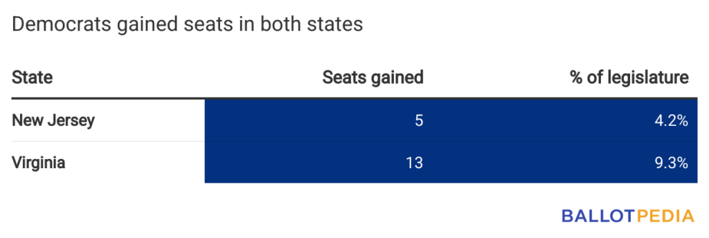 The table below shows how the general election changes this year shifted the partisan balance in New Jersey and Virginia.