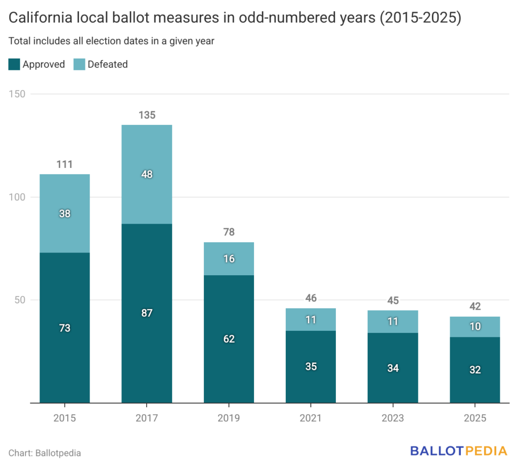 In 2025, voters in California decided on 42 ballot measures across eight elections and 17 counties.