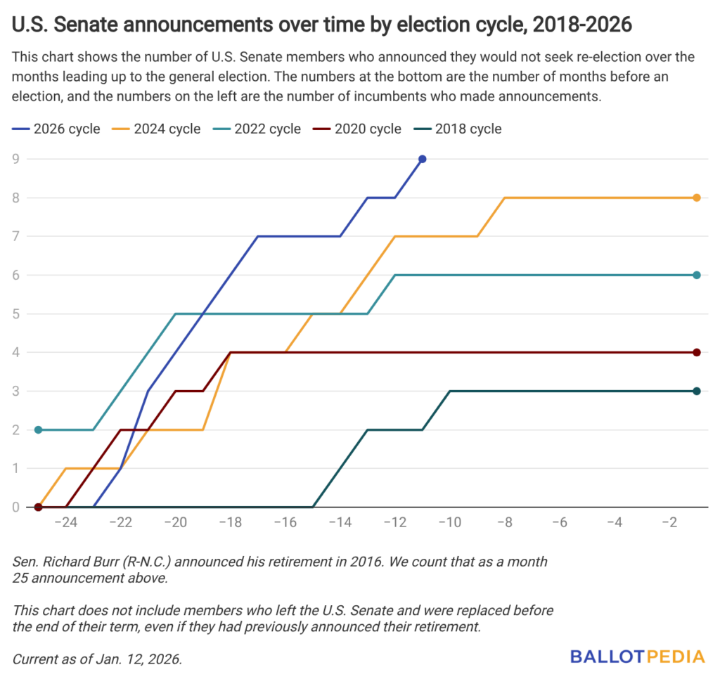 Click here to read more about members of the U.S. Senate who are not seeking re-election in 2026, and here for more about members of the U.S. House who are not seeking re-election in 2026.