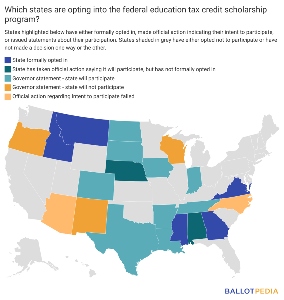 States must opt in to participate in the federal school choice tax credit. They must provide the U.S. Treasury with a list of eligible scholarship-granting organizations (SGOs), who will administer scholarships using the tax-deductible donations gathered through the federal program.