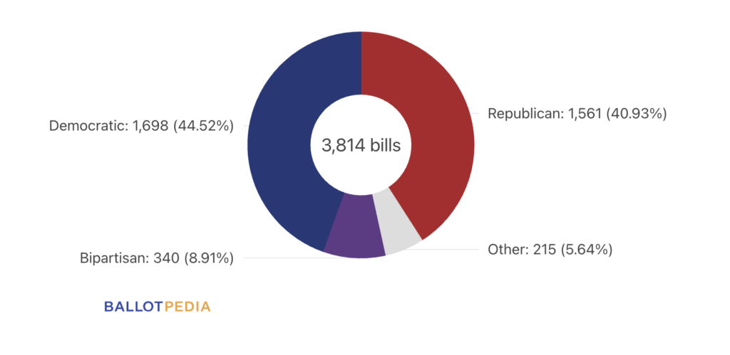 The chart below shows all bills Ballotpedia is currently tracking, broken down by partisan sponsorship: