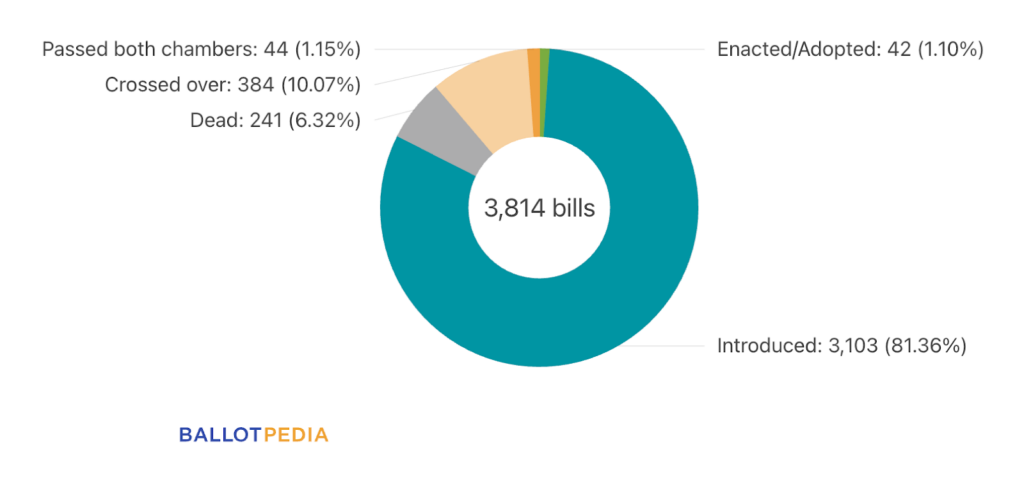 The chart below breaks down the status of those 3,814 bills by where they stand in the legislative process: