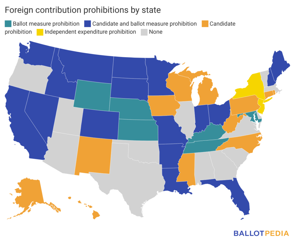 - Seventeen states prohibit foreign contributions to both candidate and ballot measure campaigns.