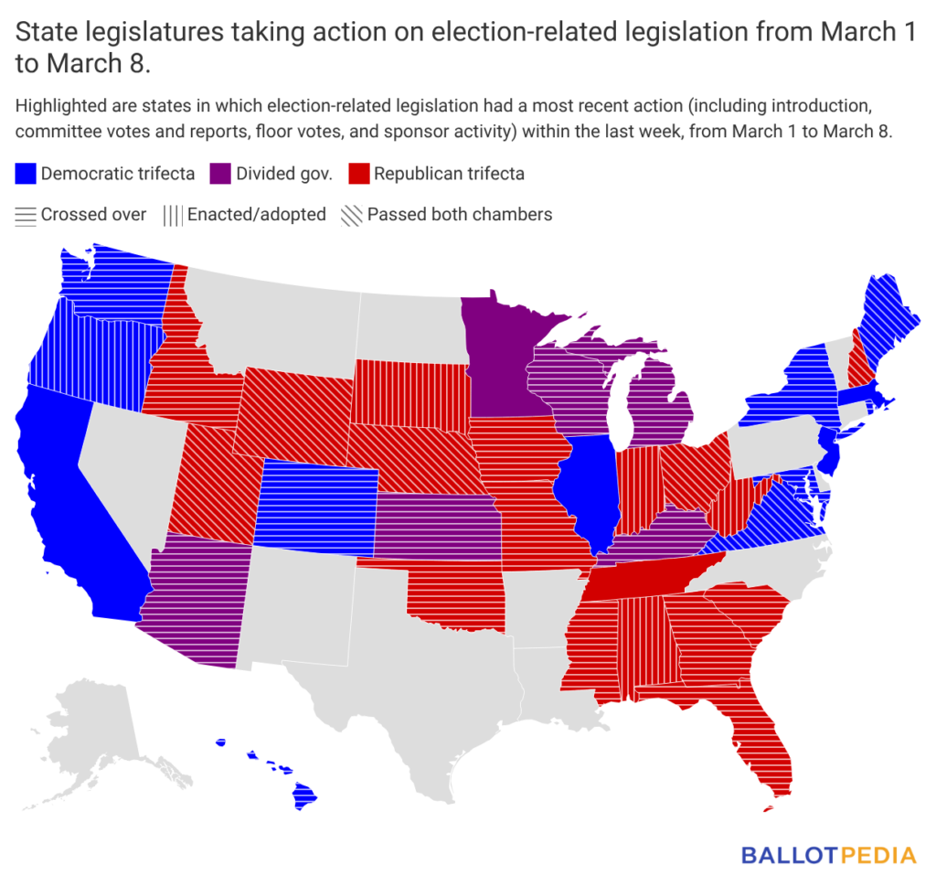 Ballotpedia is currently tracking 3,814 election-related bills across the country. We are actively processing bills filed since Feb. 24 as legislative activity increases for 2026.