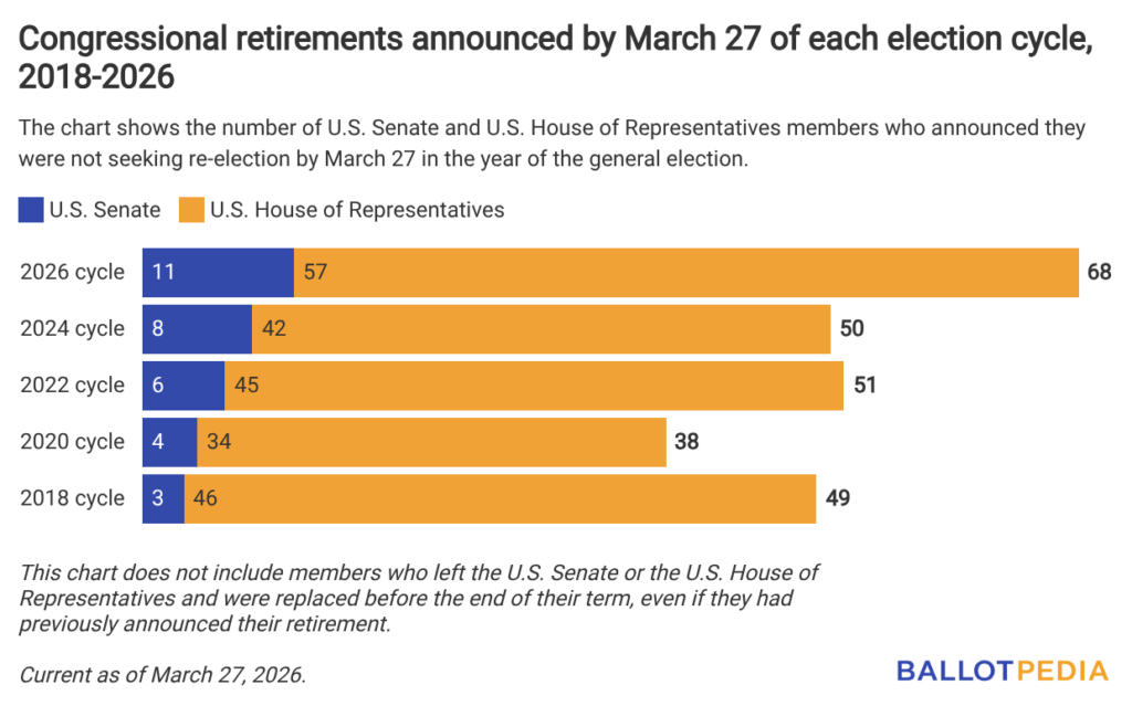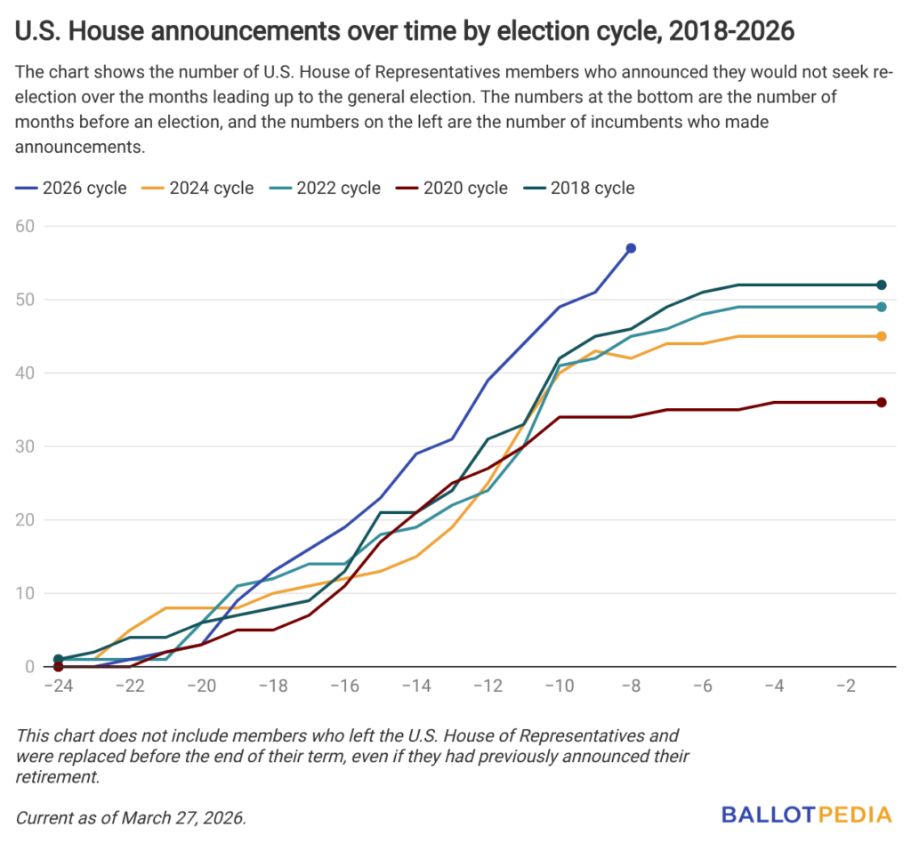Compared to the last four election cycles, there were 42 retirement announcements at this point in 2024, 45 in 2022, 34 in 2020, and46 in 2018.