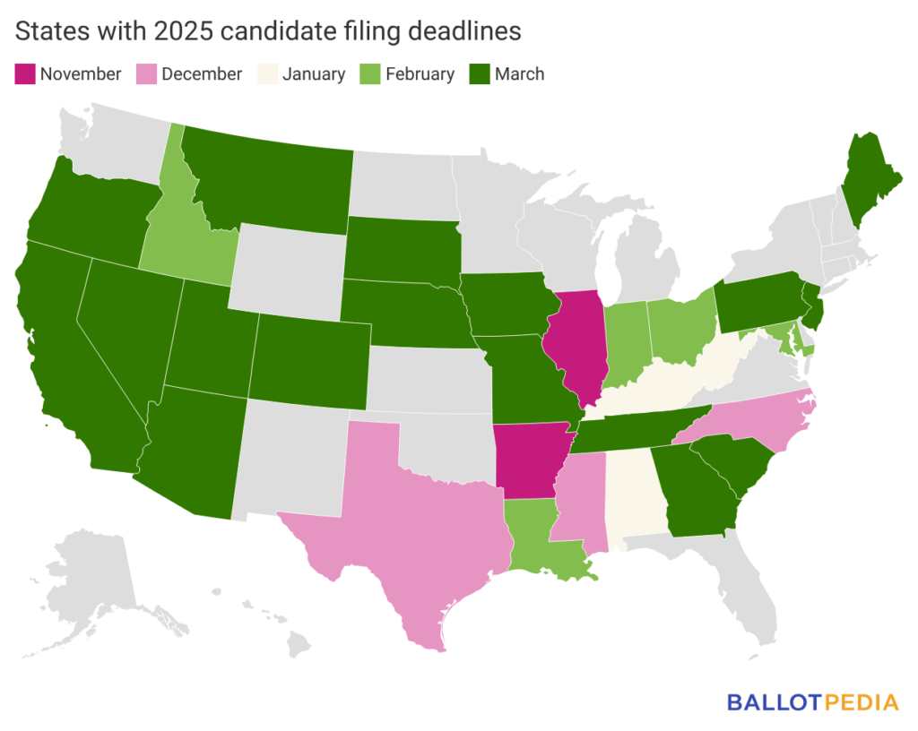 In March, the filing deadline for candidates passed in 17 states: Nebraska (March 2nd), Montana (March 4th), California, Georgia (March 6th), Oregon, Pennsylvania, Tennessee (March 10th), Iowa, Nevada, Utah (March 13th), Maine (March 16th), Colorado (March 18th), Arizona, New Jersey (March 23rd), South Carolina (March 30), Missouri, and South Dakota (March 31).