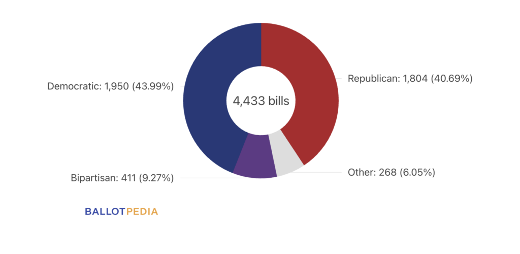 The chart below shows all bills Ballotpedia is currently tracking, broken down by partisan sponsorship: